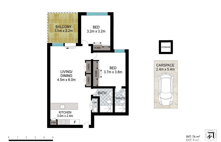 Both bedrooms feature built-in robes, providing plenty of storage space. The master bedroom also includes an ensuite bathroom for added convenience.