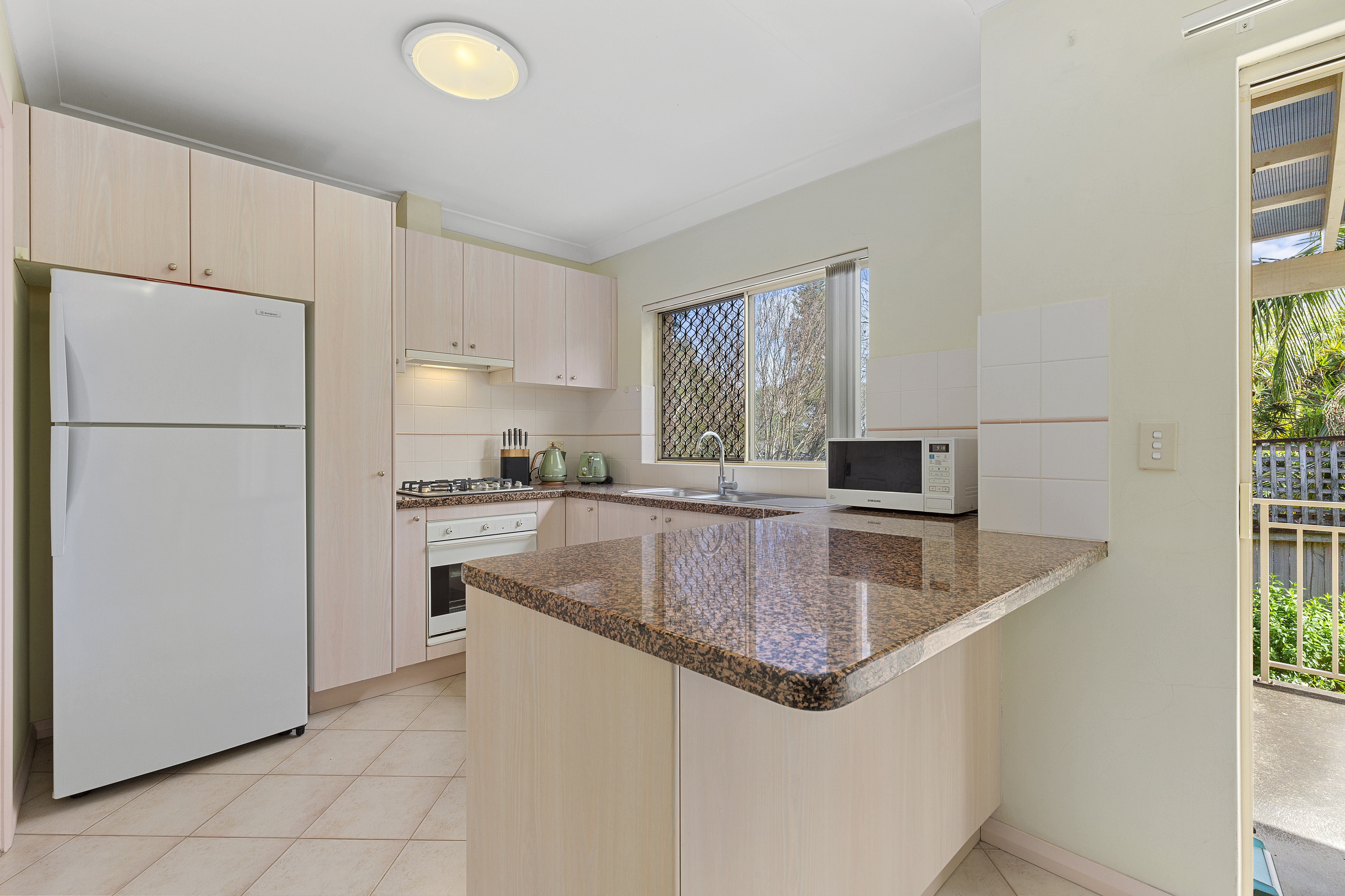 - Cozy kitchen with a stone bench top and ample room to cook in