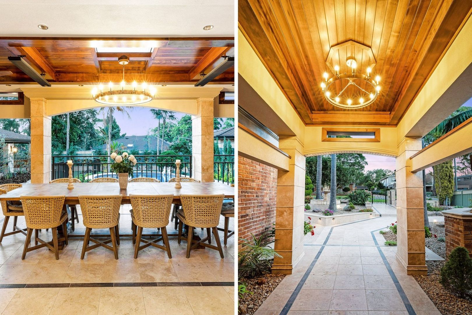 - Travertine tiling throughout outdoors with cobblestone driveway