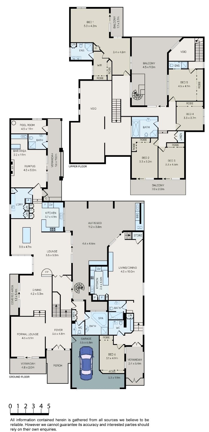 - 6 spacious bedrooms all with built in wardrobes, including a king size master bedroom with walk in robe, ensuite and balcony