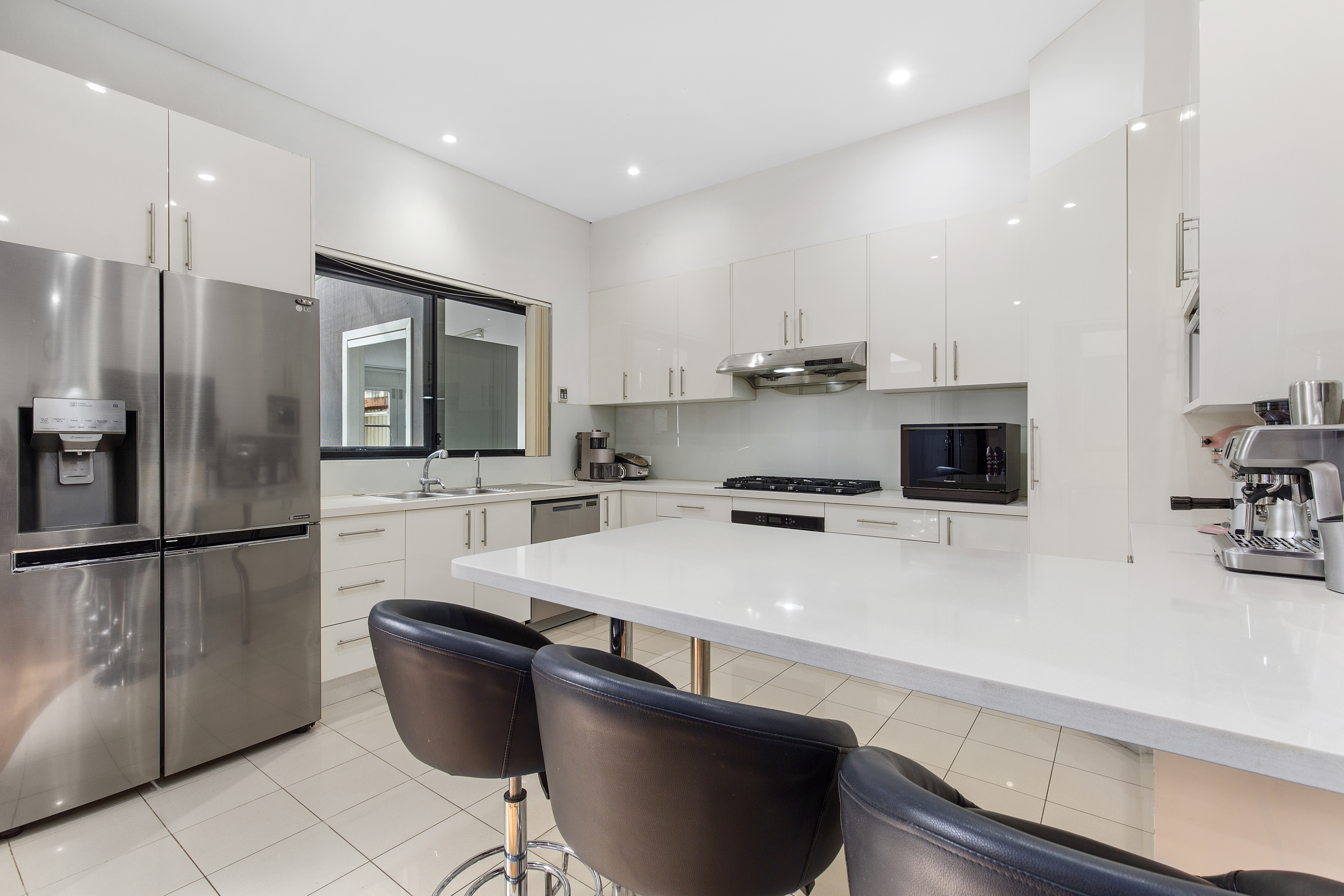 - Grand kitchen with Caesarstone benchtops, gas stove-top and walk-in pantry
