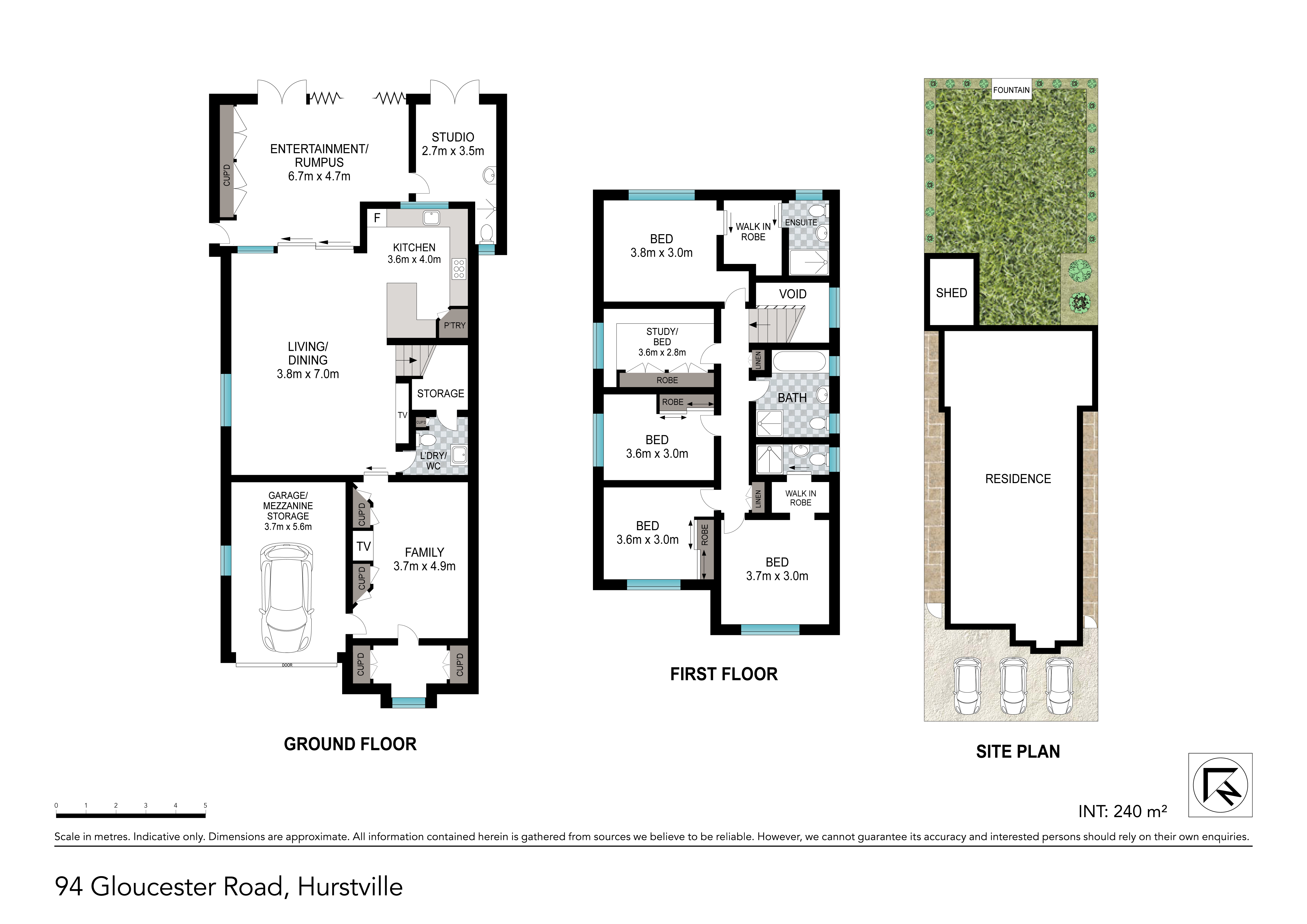 - Five bedrooms, two with walk in wardrobes & ensuites; three with built-in robes