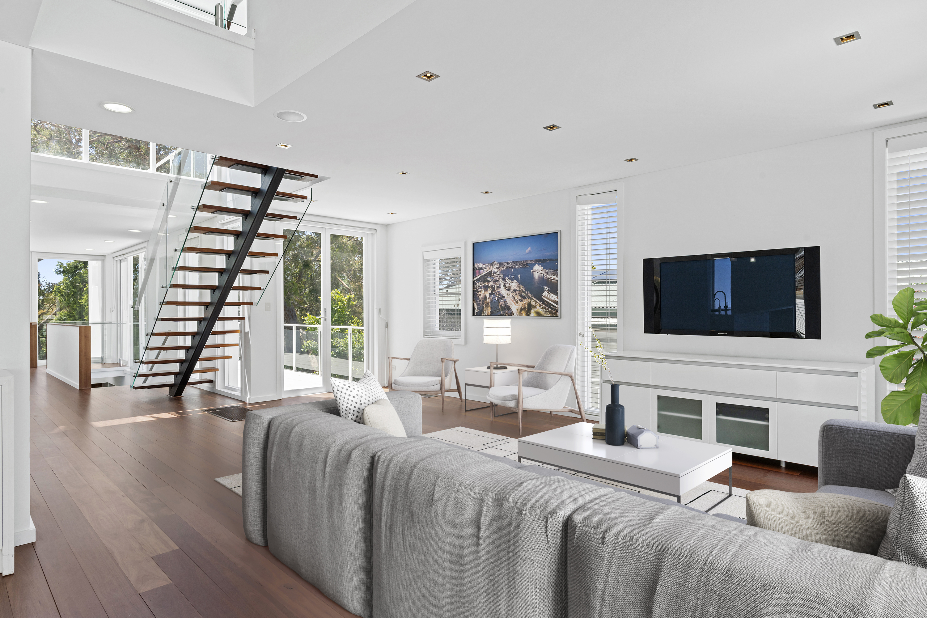 Three-level luxury residence with panoramic bushland and water views