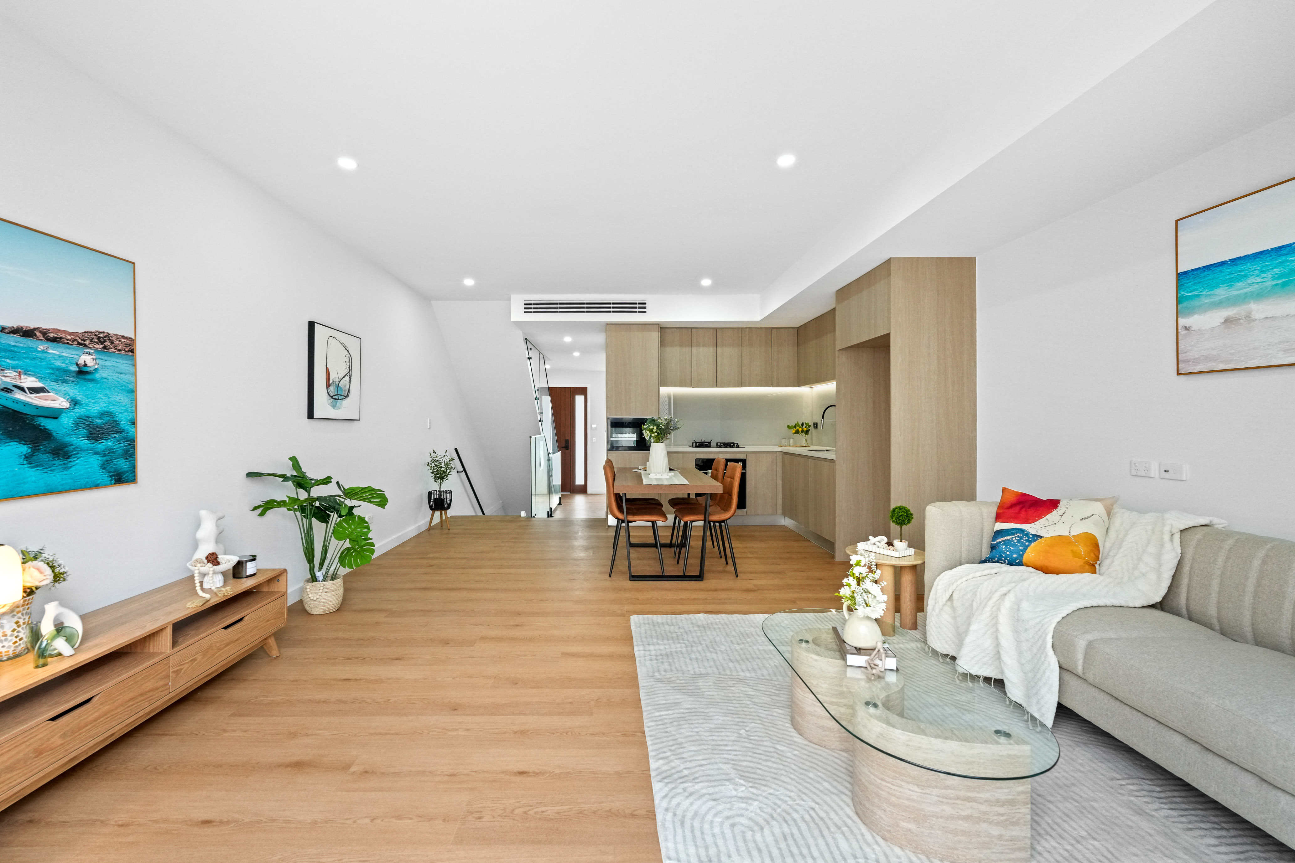 Step inside to discover a sunlit open-plan layout that effortlessly connects the designer kitchen, living, and dining areas. The kitchen showcases sleek 40mm stone benchtops and fully integrated appliances, ideal for those who love to cook and entertain.
